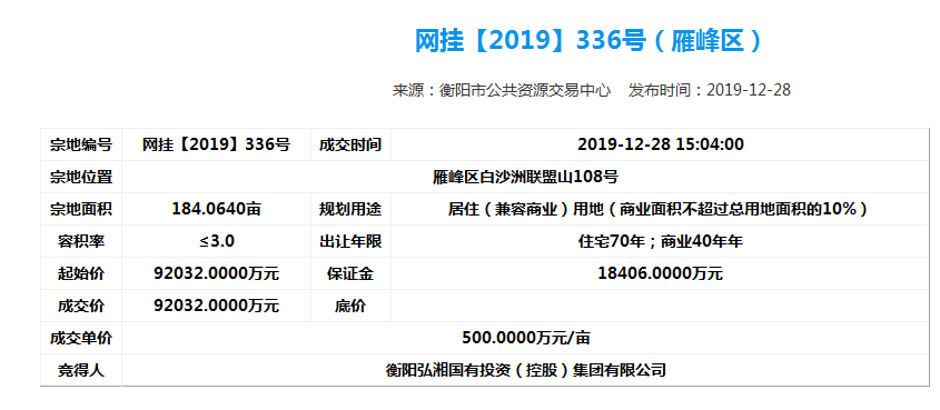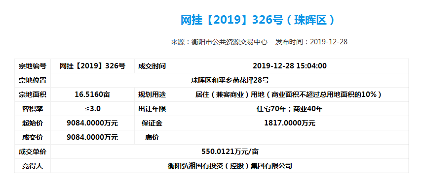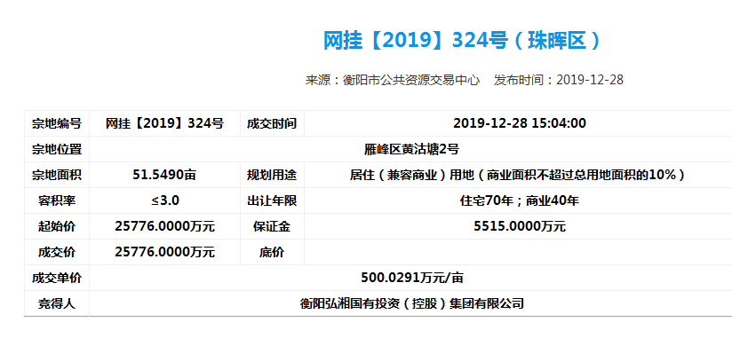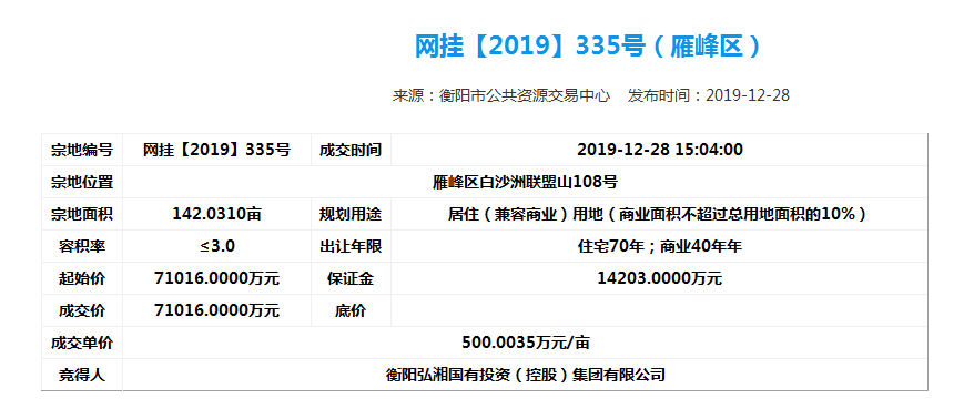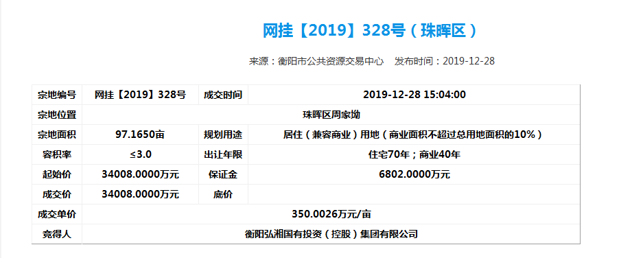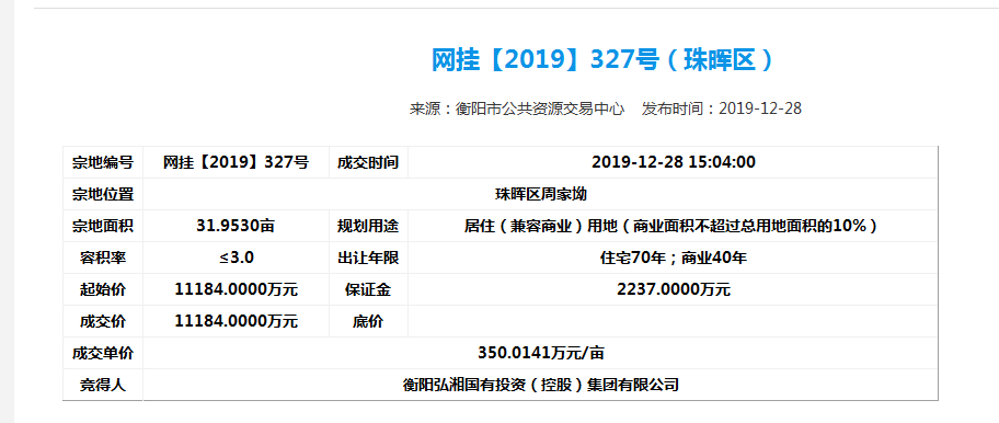 為了進(jìn)一步做好市場(chǎng)化運(yùn)行,弘湘國投以市場(chǎng)經(jīng)營為主體,向資本市場(chǎng)進(jìn)軍,進(jìn)一步做實(shí)做強(qiáng)國有資產(chǎn),增強(qiáng)自身活力。2019年12月28日下午,弘湘國投在市公共資源交易中心網(wǎng)站成功摘牌6宗共計(jì)523畝改制企業(yè)土地,摘牌總價(jià)超24億元,并于當(dāng)日簽訂了《國有建設(shè)用地使用權(quán)公開出讓成交確認(rèn)書》。2019年12月31日,弘湘國投與市自然資源和規(guī)劃局正式簽訂了《國有建設(shè)用地使用權(quán)出讓合同》。
