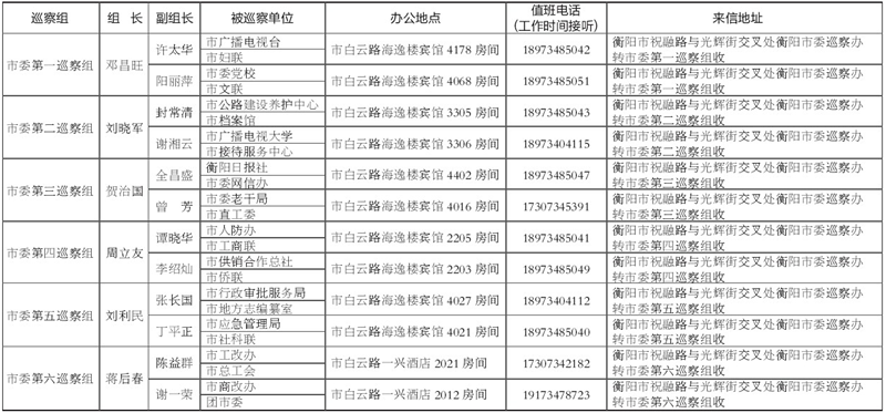 附:十一屆市委第九輪巡察進(jìn)駐一覽表