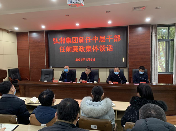 “這次競聘任用的各位中層干部,是我們公司發(fā)展的中流砥柱,同志們必須帶頭廉潔自律,自覺做到廉政廉潔,切實擔負起抓黨風廉政建設(shè)和經(jīng)營管理工作的雙重責任?!?月6日上午,弘湘集團新任38名中層干部任前廉政集體談話正在進行。