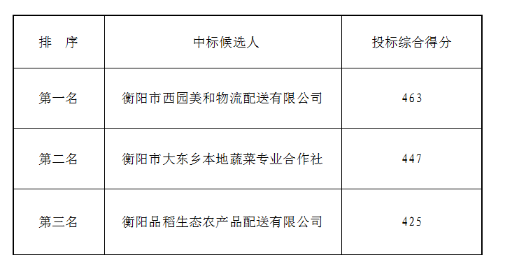 衡陽弘湘食堂食材(蔬菜類)公開比選候選人公示