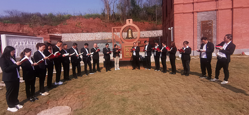 在黨建廣場,全體黨員面對鮮紅的黨旗,莊嚴(yán)地舉起右手,重溫了入黨誓詞。