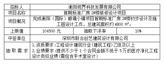 首期標(biāo)準(zhǔn)廠房2#樓裝修設(shè)計項目抽取結(jié)果公示