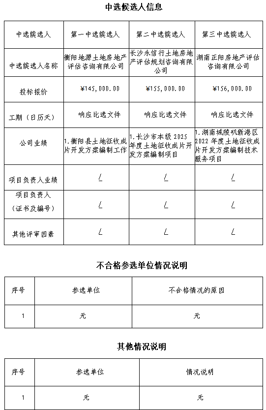 衡陽市雁城東路(東方里街-東二環(huán))及雁城東路與建湘連接線新建工程土地征收成片開發(fā)方案編制服務(wù)比選中選候選人公示