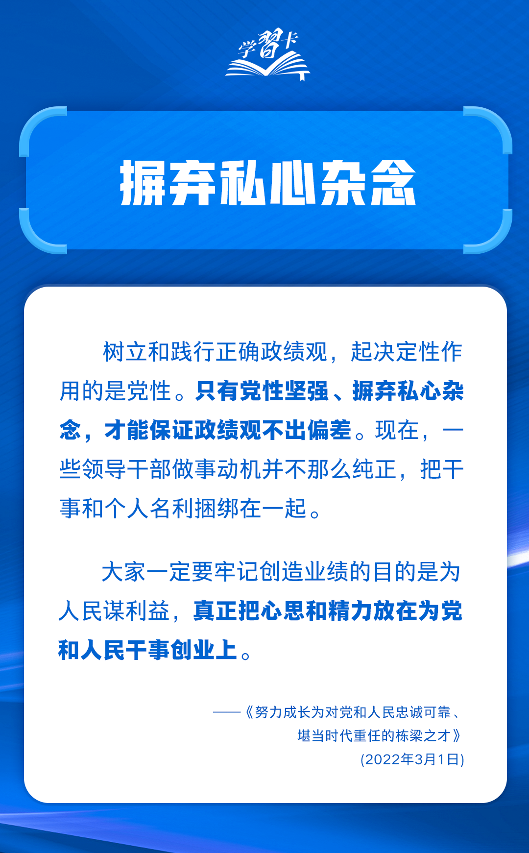 樹立和踐行正確政績觀,起決定性作用的是黨性。立黨為公,作為共產(chǎn)黨員,作為黨的干部,只有一心為公,事事出于公心,才能有正確的是非觀、義利觀、權(quán)力觀、事業(yè)觀。