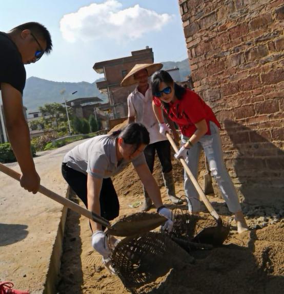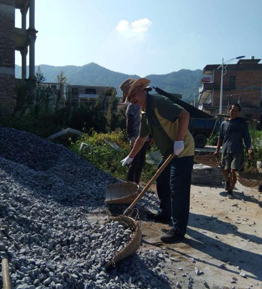 2018年8月20 日早晨8:30的關(guān)市寶新村譚海容家門(mén)口,已是一番熱鬧的勞動(dòng)場(chǎng)面,水泥攪拌機(jī)歡快地運(yùn)轉(zhuǎn)著,人們?cè)谙娜盏某?yáng)下?lián)]汗如雨,有條不紊地對(duì)門(mén)口的地面進(jìn)行找平、水泥硬化,原來(lái)這是弘信公司的全體員工對(duì)貧困戶譚海容家的一次集體扶貧活動(dòng)。他的老母親80多歲了,眼睛視線不好,家里因?yàn)樨毨В堇锖烷T(mén)口的地面凹凸不平,為防止老人意外摔倒,大家集體策劃了此次扶貧活動(dòng)。